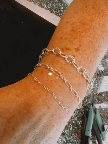 We offer .925 sterling silver, 14k Gold Filled, 14k Gold options in our jewelry collection. We can create anything from bracelets, necklaces, and anklets to belly chains, hand chains, and more!